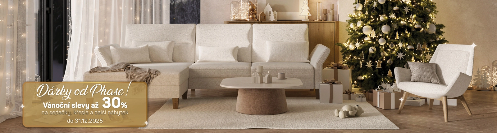 Prosinec je čas, kdy se domov stává tím nejdůležitějším místem. Ve Phase jsme pro vás připravili vánoční akci, se kterou si můžete vytvořit útulný, pohodlný a elegantní domov přesně podle sebe a za mimořádně výhodné ceny.