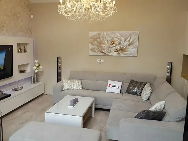 Na fotce od našich klientů můžete vidět, jak vhodně doplnili jemně šedou sedačku dvěma tmavšími polštářky. Dobře tak vyvážili tmavou televizi a reproduktory a celý prostor stále působí světle a elegantně. Zdroj: sedackyphase.cz