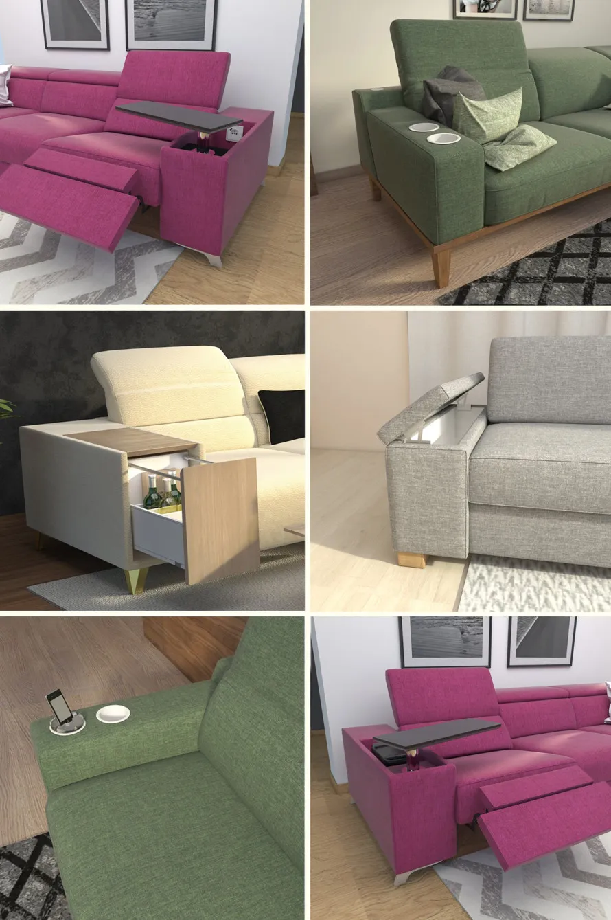 Dnešní obýváky často slouží i jako pracovny. Pokud je to i váš případ, pak je pro vás jako stvořená sedačka s područkou, ze které lehce vysunete držák na tablet či mobil (modely MODENA, MATERA, AVILA, NEAPOL). Standardem je také vestavěná elektrická a USB zásuvka, kterou najdete například v sedačkách MATERA, TAORMINA, MODENA či AVILA.
