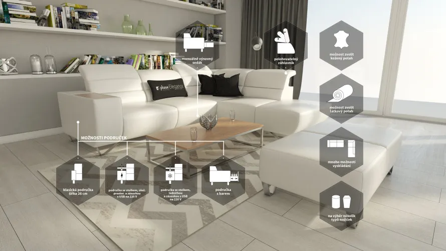 Jen tak si sednout na sedačku, nastavit si svou oblíbenou polohu, položit si kávu na otáčecí stolek, zapojit vybitý telefon do USB zásuvky a relaxovat po těžkém dni v práci. Tohle vše a ještě více je možné se sedací soupravou od Phase. Přečtěte si, jaké technologické vychytávky může obsahovat Vaše nová sedačka.