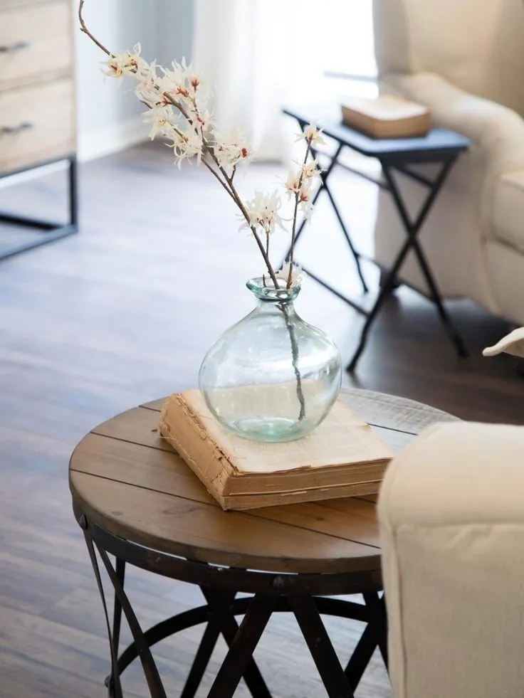 Do malého obývacího prostoru stačí dát menší odkládací stolečky a přemisťovat je v prostoru podle potřeby. Zdroj: pinterest.com