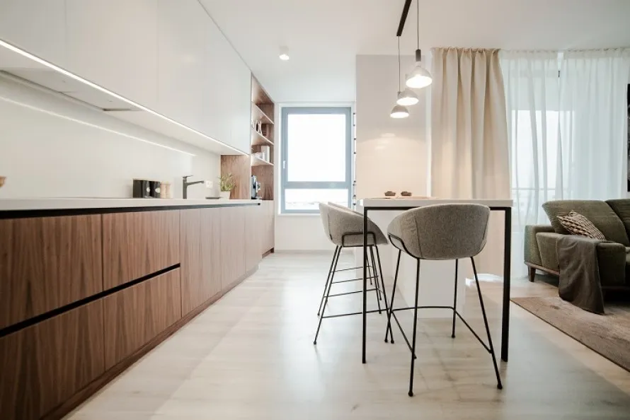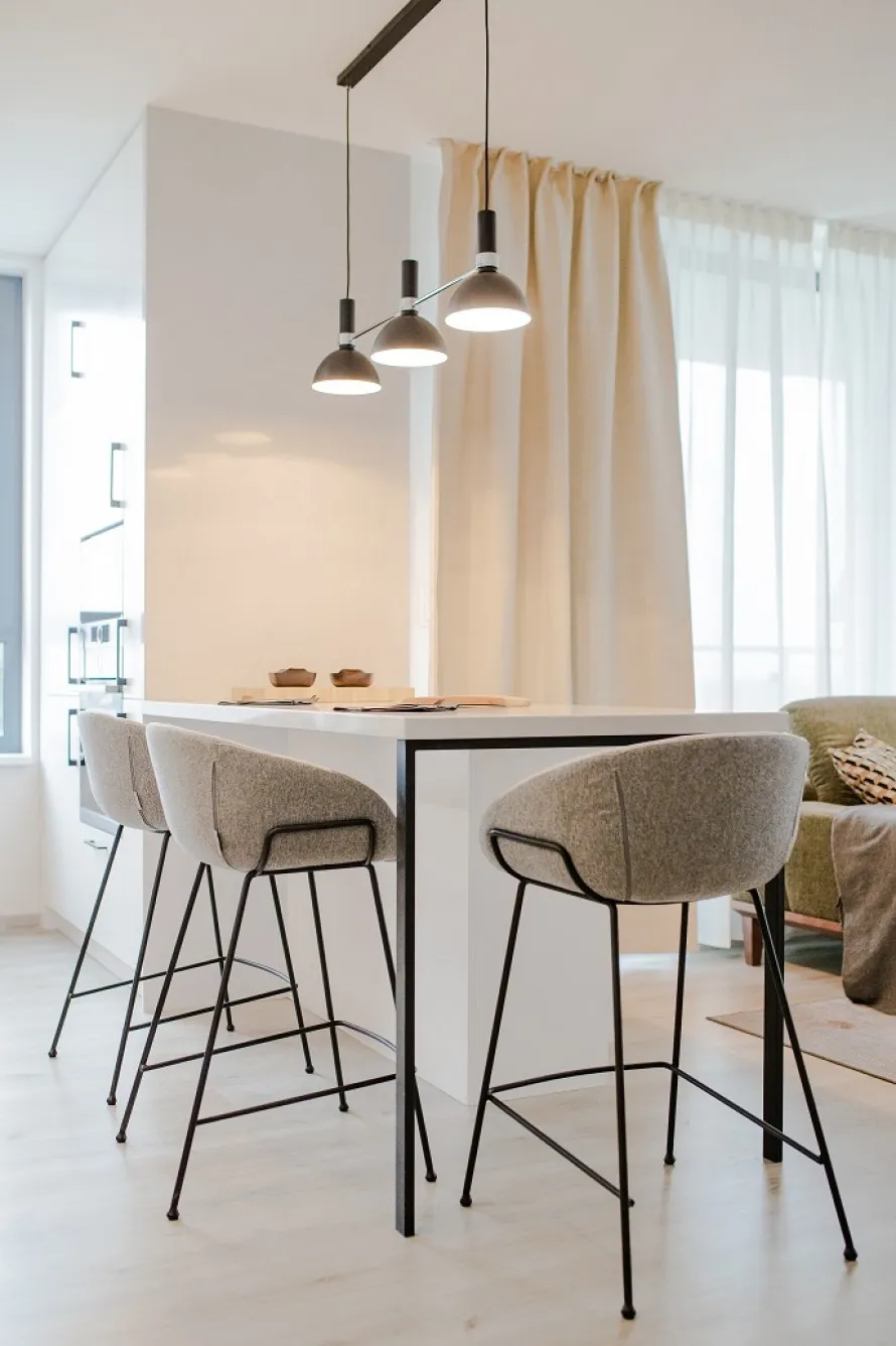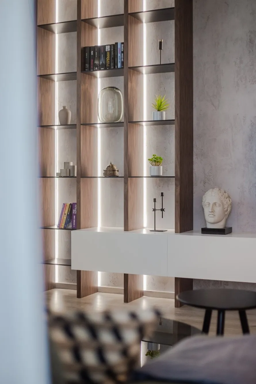 Roman si přál byt ve světlých odstínech, což mu interiérový designer Michal Skrak splnil. Byt však potřeboval špetku zpestření. Kus nábytku, který upoutá pozornost a zároveň opticky zateplí světlý interiér. Prvek, který bude výrazný a současně harmonický.