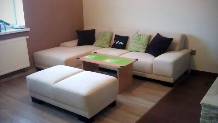 Jaroslav se proto rozhodol to změnit. Vsadil na prostorný rohový model COSMO, který je v současnosti nahrazen novějším modelem MONACO. K sedačce přibyla i taburetka, a tak dříve nevyužitý roh pokoje nyní poskytuje více místa k sezení. Sedačka navíc barevně ladí se stěnami a tato hra barev dodává pokoji nádech luxusu. Polštáře ještě umocňují pocit komfortu a zútulňují prostor.